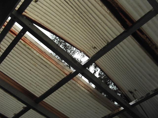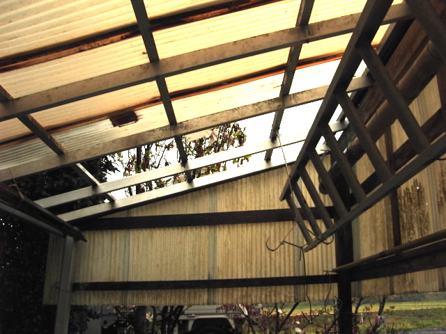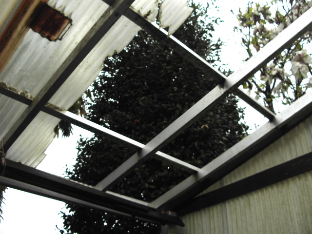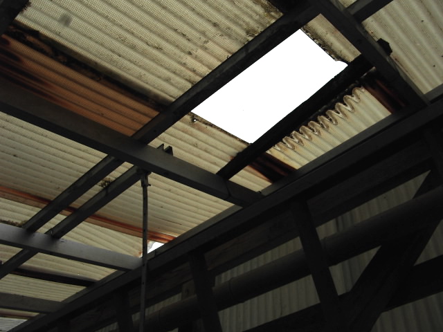 そしてさらに他にはトタンが反り返ってしまいこれまた大穴が空いていました。