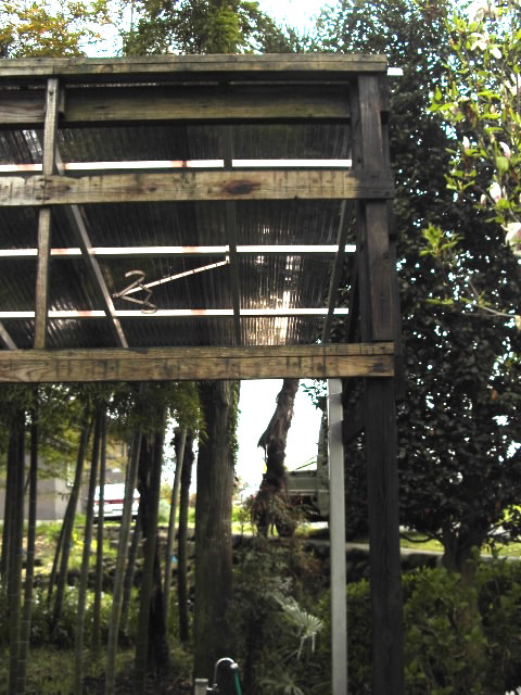 そして屋根を貼り、屋根と壁の境界の三角部分にもトタンを被せました。