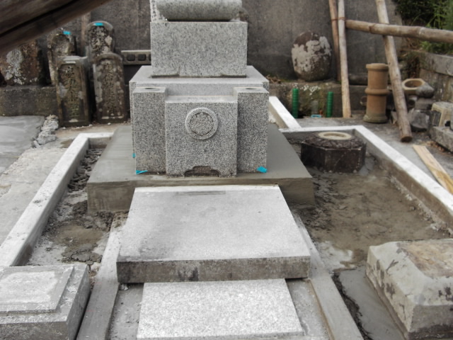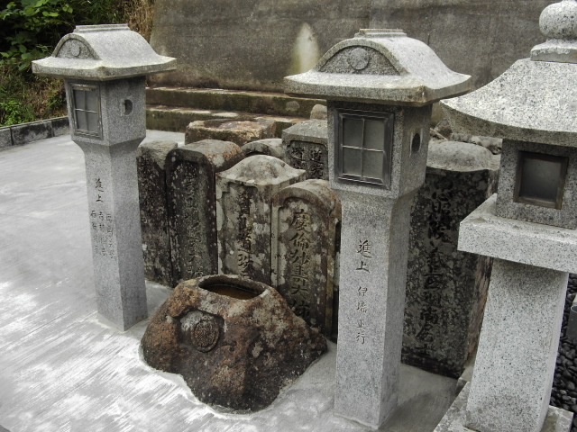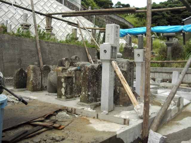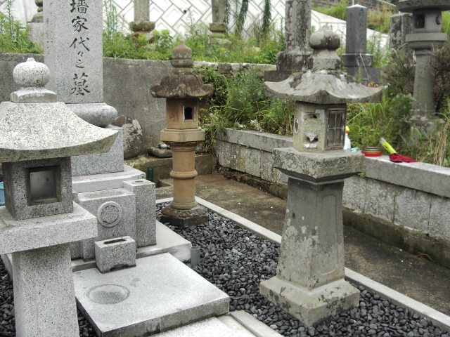 灯籠と水溜めを前に置き各々方のお墓を並べました。