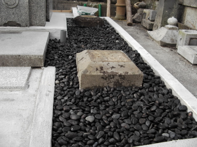 そしてメインのお墓では玉砂利を敷き詰める作業に追われていました。