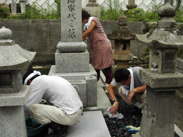 仕上げがてらみんなでお墓を磨きました。