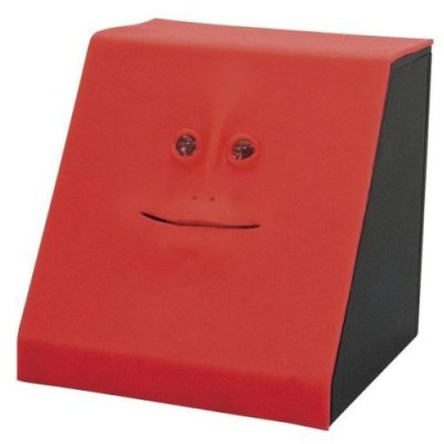 お金を入れるとパクパク口を動かすきもかわいい貯金箱