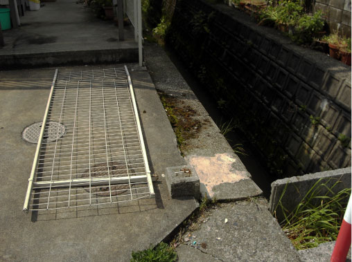 マンションの側にある川用につくられた柵が壊れてしまった。と連絡がありました。
