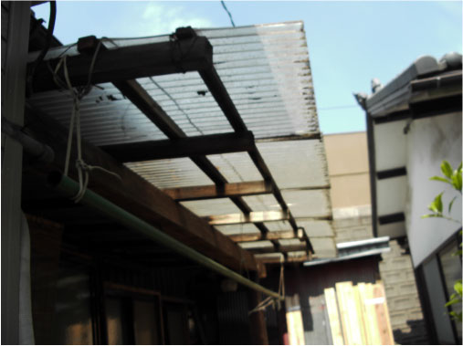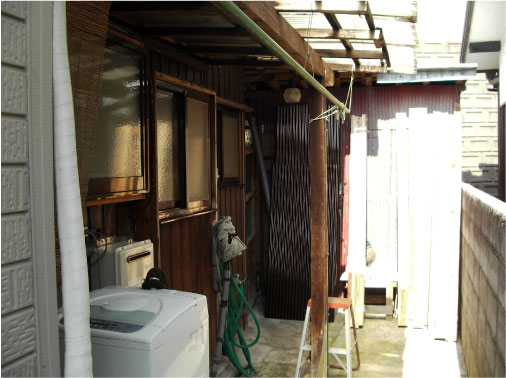 トタン屋根を張り替え、トタンで壁をこしらえました。雨が降っても濡れることなく洗濯物が干せるようになりました。